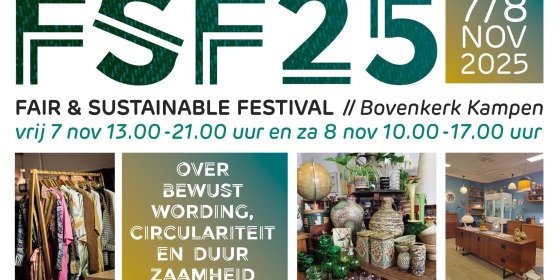 Op vrijdag 7 en zaterdag 8 november 2025 verandert de indrukwekkende Bovenkerk in Kampen opnieuw in een bruisend centrum van duurzaamheid, creativiteit en beleving. Tijdens de vierde editie van het Fair & Sustainable Festival ontdek je de mooiste vintage schatten, circulair design en inspirerende initiatieven die laten zien hoe leuk én stijlvol duurzaam leven kan zijn.